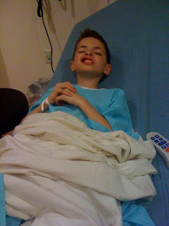 So, back we headed to Children's Hospital. And wouldn't you know it? The same doctor and nurses were on call and they remembered us! Sigh. But that was actually a good thing, because I think they took extra good care of Jarron. The gash ended up being so deep, it went all the way through, like a hole in his upper lip. He got four stitches and strict orders to take it easy and avoid physical activity for awhile.